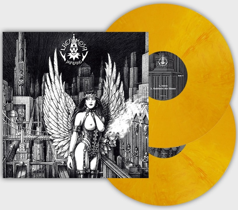 Inferno is strictly limited to 500 red-white-black marbled and 500 yellow-white-orange-red marbled "Inferno" double LPs (180g) in gatefold incl. booklet.