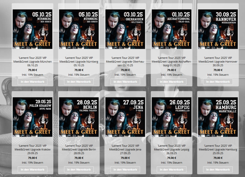 Also on our upcoming tour through South America and Mexico we'll have another chance to see each other briefly in person: 50 exclusive Meet & Greet Tickets will be available for each concert. You can get these—while supplies last—from Fans & Bands: fansandbands.org/lacrimosa